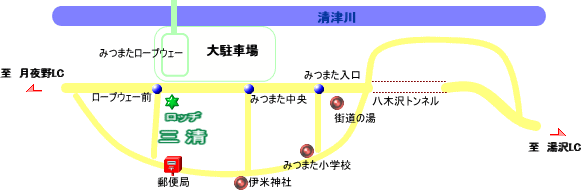 ●当ロッヂは、かぐらスキー場みつまたロープウェー乗り場前です。スキー場を目安にお越しください。